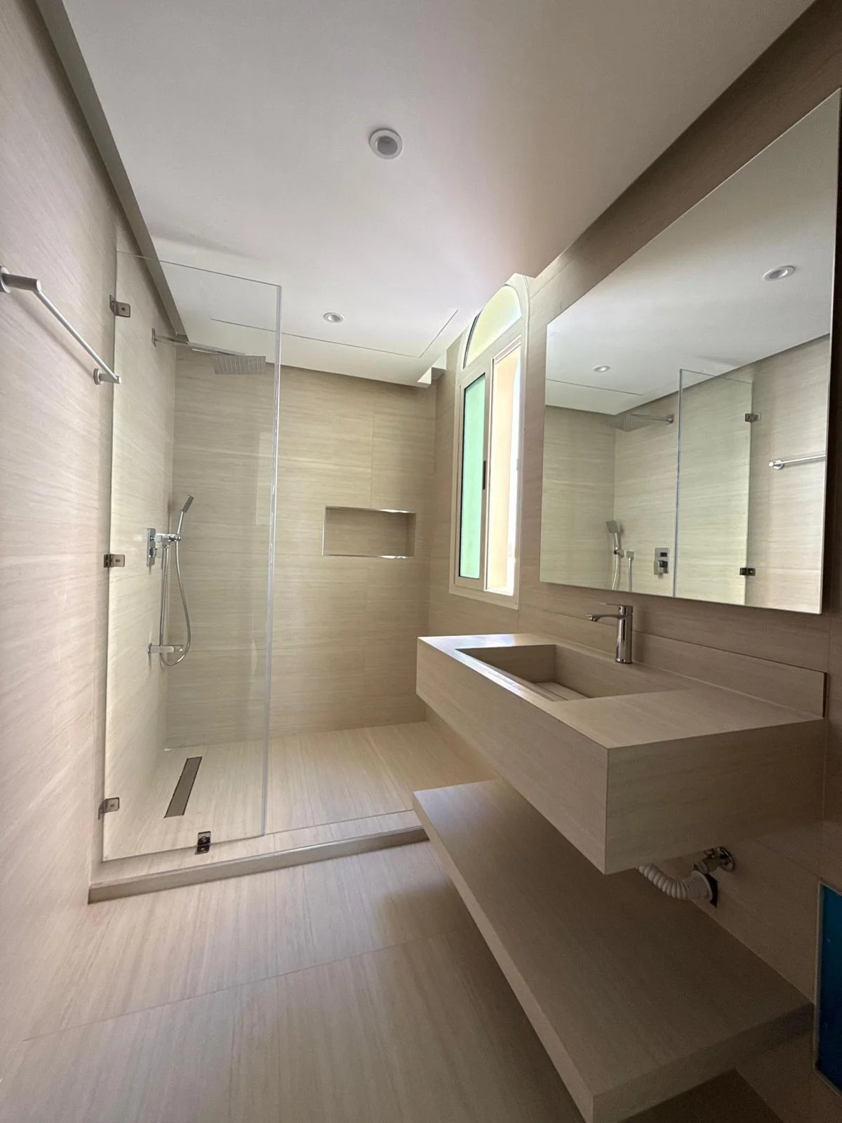 - Elegant porcelain flooring